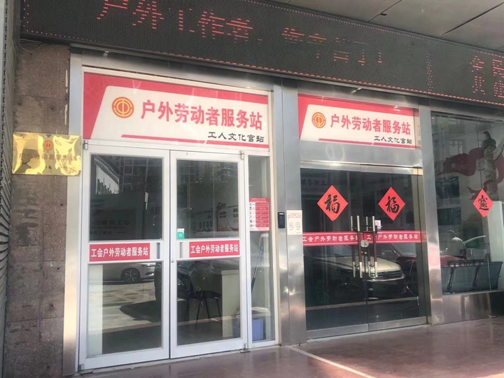 徐州市总工会户外劳动者服务站工人文化宫站为徐州市总工会设立并建设,位于鼓楼区文化路99号文化大厦一楼,地铁1号线民主北路站东出口对面。服务站以环卫工人、快递员、送餐员、出租车司机、交警辅警、城管执法人员等户外劳动者为主要服务对象。服务站坚持竭诚服务职工宗旨,解决户外劳动者“热饭难、喝水难、休息难、如厕难”等实际问题,是改善户外劳动者劳动条件的公益服务保障平台,宣传和教育户外劳动者的阵地,树立工会形象、彰显工会作为的窗口,是全社会奉献爱心、传递正能量的纽带和桥梁,于2021年5月1日挂牌并投入使用。